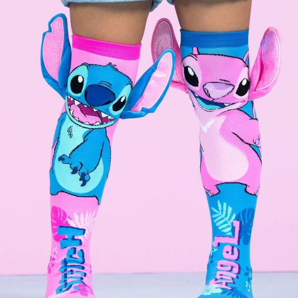 Today's Groupon offers Two Packs of Stitch-Inspired Funky Socks in Blue and Pink Design, distributed by UKdreamstore.