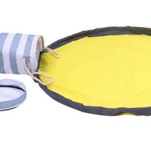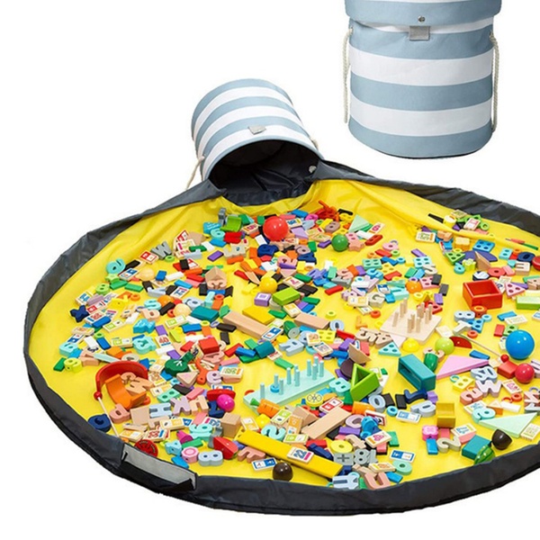 • Includes a large drawstring tray to lay out one's toys and bundle them up in a flash
