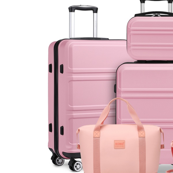 - Includes 12-inch, 20-inch, 24-inch, and 28-inch hard shell suitcases, a large bag, and a clutch bag