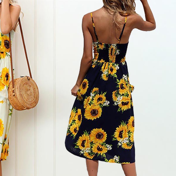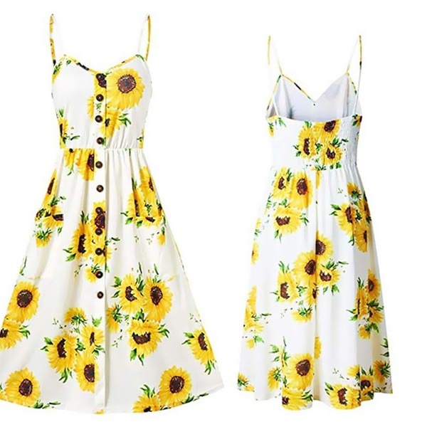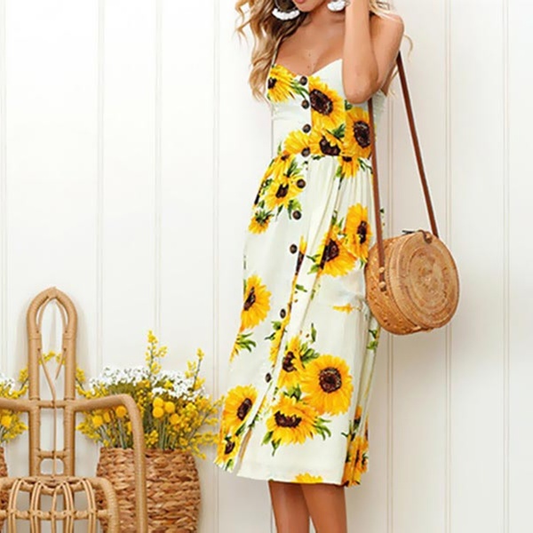 Featuring a single row of buttons and a soft, breathable material, this dress is perfect for hot and sunny days