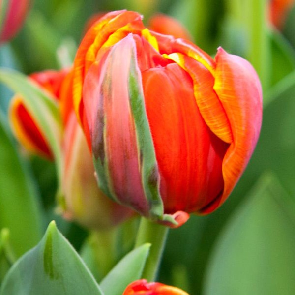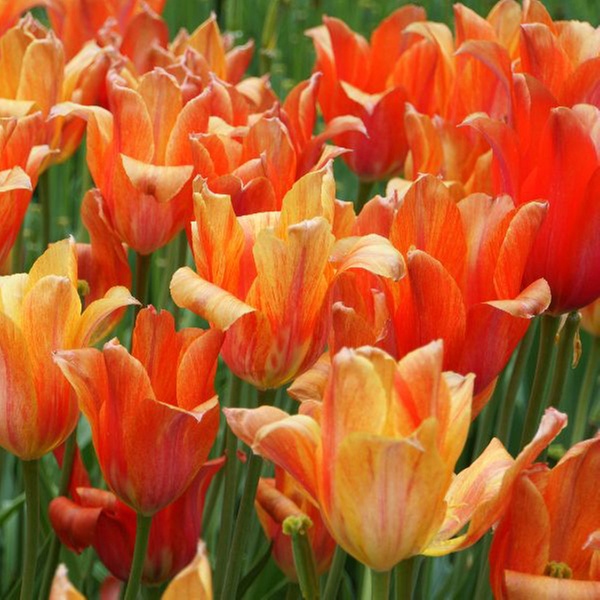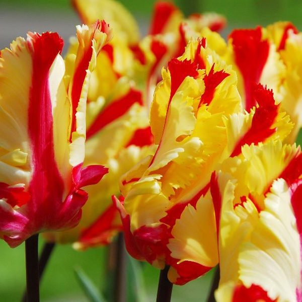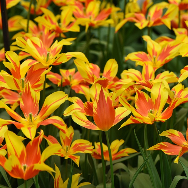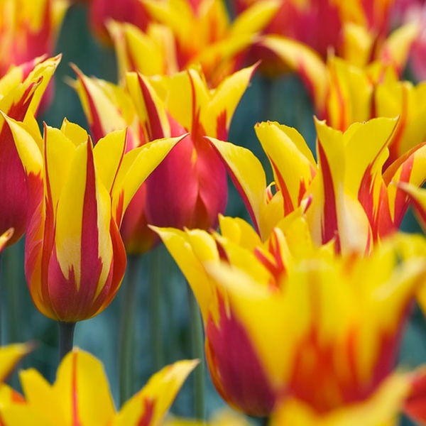 • Bold colour clash: pointed, winged petals in striking red and yellow for a fiery spring display.