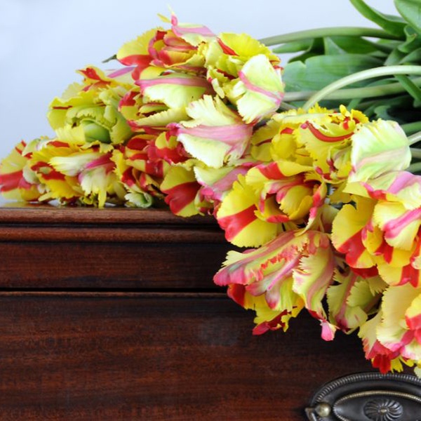 • Striking colour: bold yellow petals with scarlet red flames for dramatic spring impact.