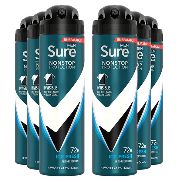 • Sure Men Nonstop Protection Invisible Antiperspirant Deo Ice Fresh 150ml, 6pk
