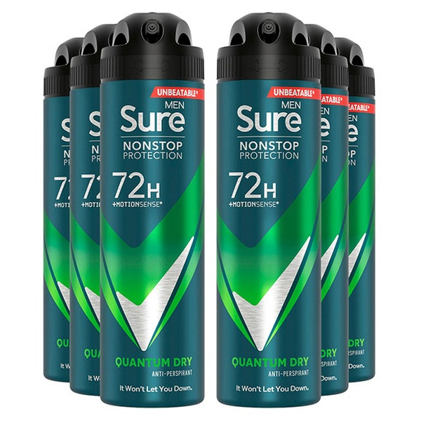 • Sure Men Nonstop Protection 72H Anti-Perspirant Deodorant Quantum Dry 150ml, 6pk
