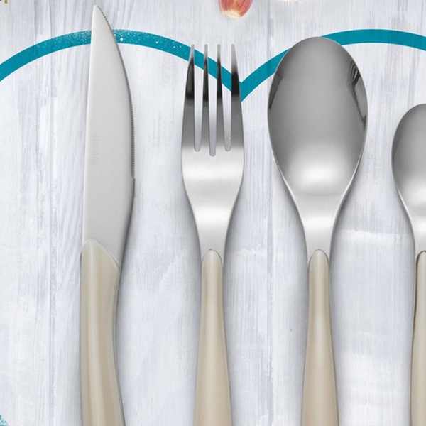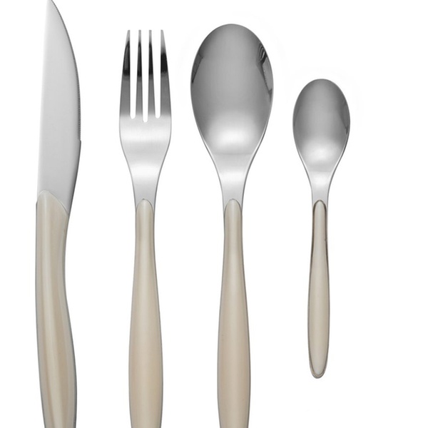 - Includes six knives, six forks, six teaspoons and six dessert spoons