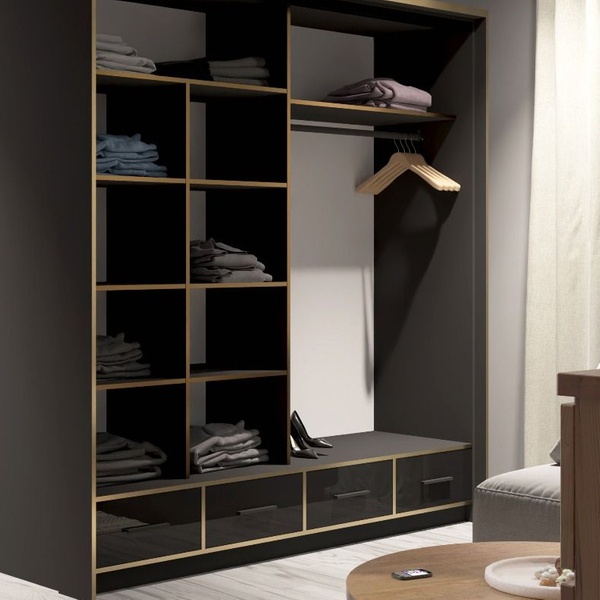 The sleek, sliding doors of this wardrobe offer easy access while maximising space, making organisation effortless and stylish
