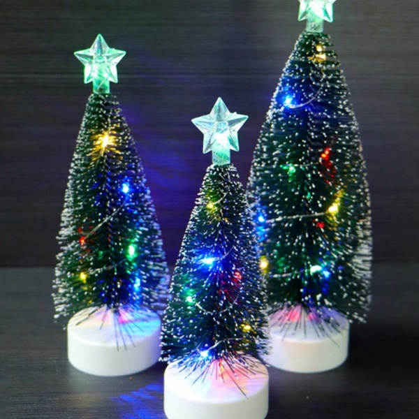 - Each tree comes wrapped with a string of LED lights for a warm glow.