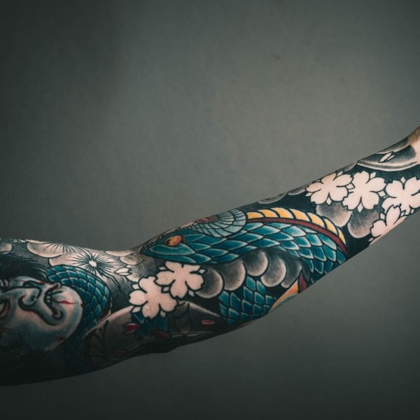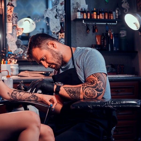 Following a 30-minute consultation, a tattoo artist converts ideas onto the skin during 60 minutes of tattoo time