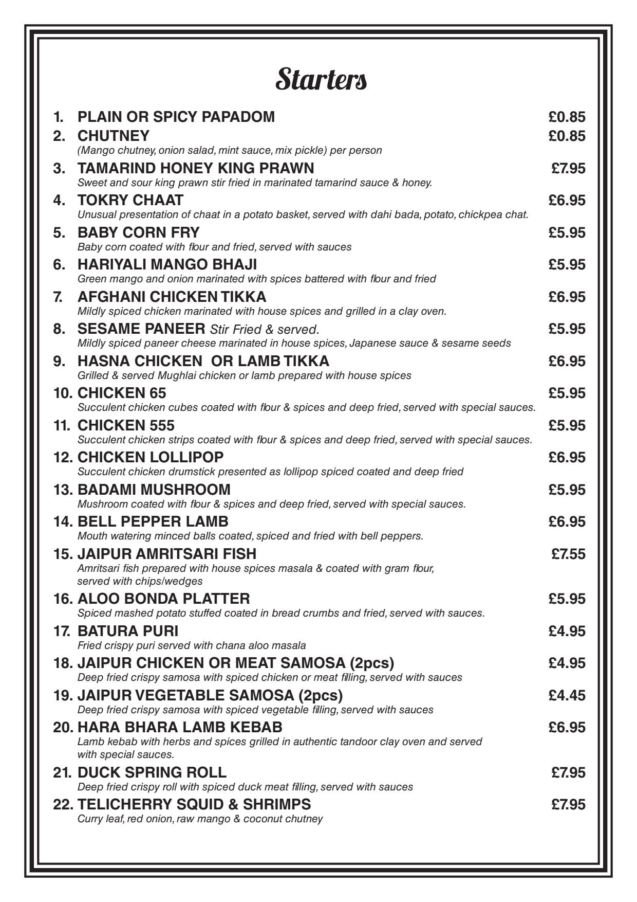 For Two Guests – Enjoy a starter, main, and soft drink each, plus rice or naan to share.