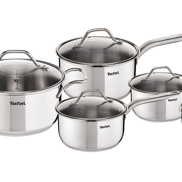Master the art of frying with this induction five-piece pan set from Tefal that features internal measuring marks and glass lids