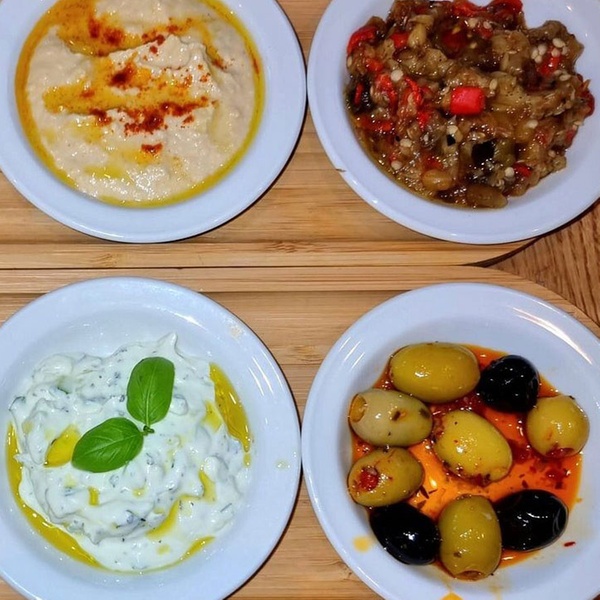 Choice of starter from: Cacik, Saksuka, Hummus, Ezme, Mixed olives.