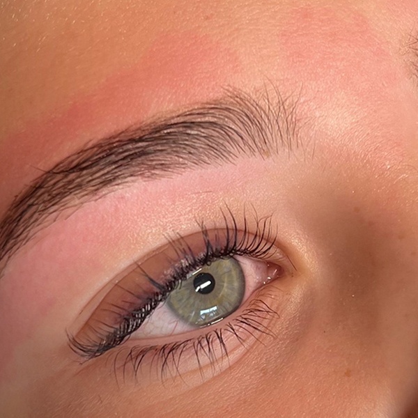 Lash Lift and Brow Lamination with Tint Combines a lash lift and tint with brow lamination to style and set hairs in place, finished with a brow tint for a fuller look.