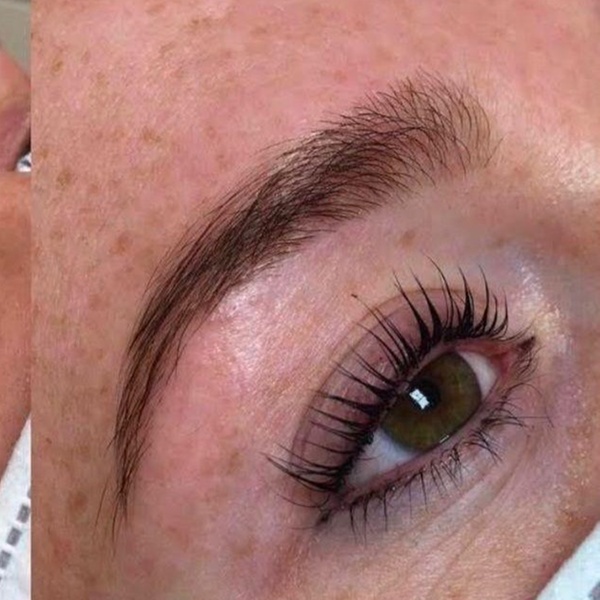 Eyebrow lamination: Technicians apply a keratin-based solution to the eyebrows to shape and nourish them as well as tame unruly hairs. The brows stay brushed up and lifted for about six weeks.