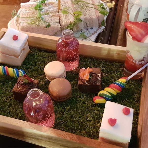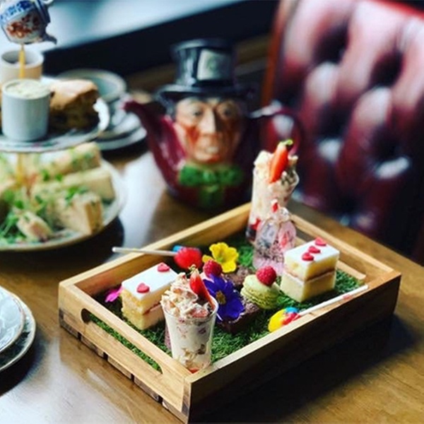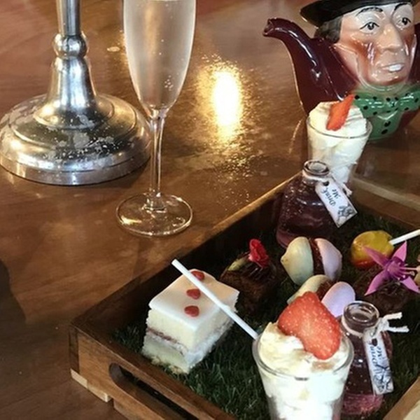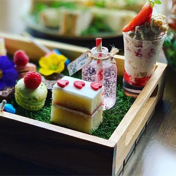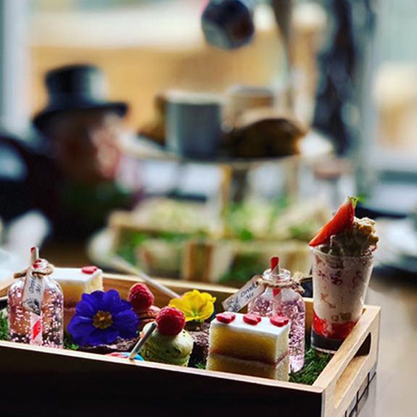 Tumble down the rabbit hole and enjoy Mad Hatter’s, themed afternoon tea featuring a spread of sweet and savoury treats