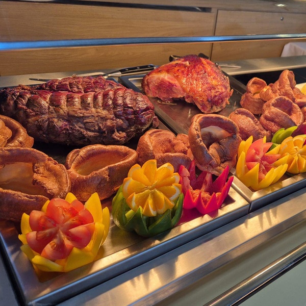 • Mains: Adult Carvery, choice of two meats, a selection of seasonal vegetables, roast potatoes, Yorkshire pudding & gravy. Chicken breast or vegan roast available on request