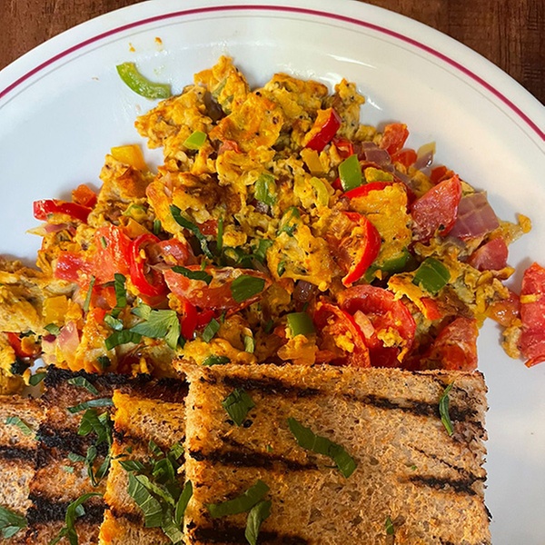 - Masala Omelette – Fluffy omelette cooked with onions, tomatoes, chilli, and spices, served with toast.