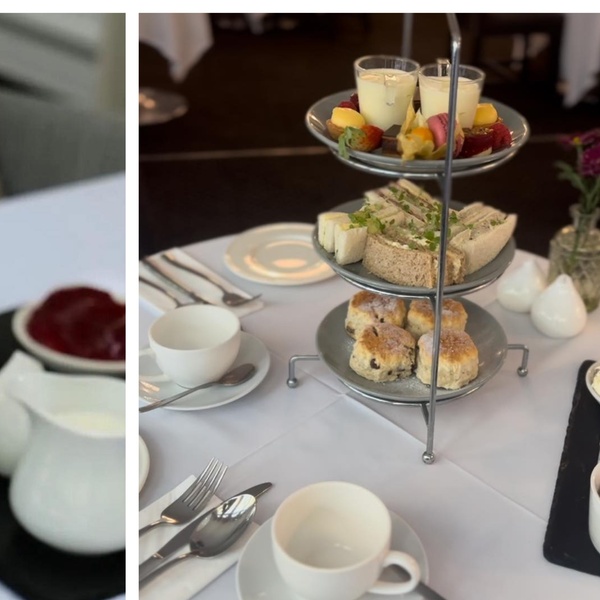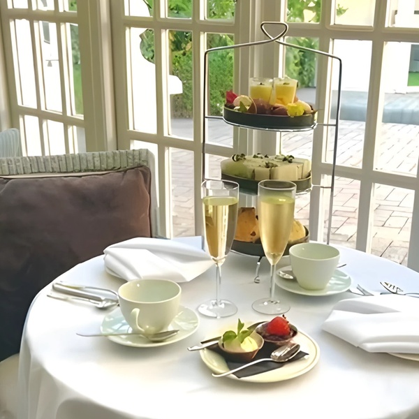 In a tranquil, stylish setting, enjoy a beautifully presented selection of freshly made finger sandwiches, warm homemade scones with Dorset clotted cream and strawberry jam, and a decadent assortment of artisan pastries, petit fours, and sweet delights—expertly crafted for a truly indulgent treat.