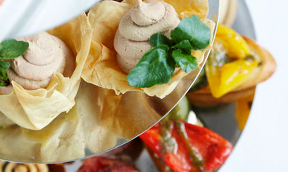 - Assorted sandwiches with scones, cakes and pastries