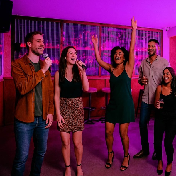 Enjoy a private karaoke booth for up to 15 people paired with a delicious cocktail jug. Perfect for birthdays, celebrations, and fun-filled nights with friends—sing, sip, and create unforgettable memories in a vibrant, private setting!
