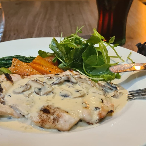 Chargrilled chicken breast with smashed avocado, heritage tomatoes, mixed leaves, and crisp Parma ham.