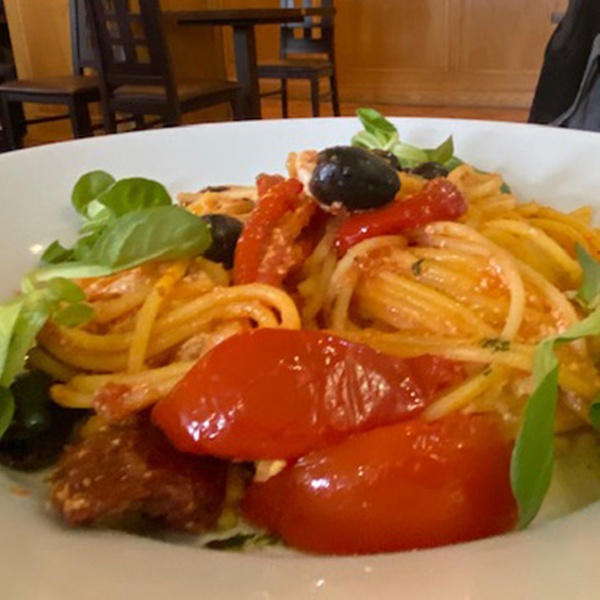 - Main courses available include: whole ham hock on the bone, glazed with beer, honey and ginger, served with vegetables and a choice of potato | double cheese and bacon burger with two 4oz beef patties, sliced dill gherkins, tomato and onion sauce, lettuce and mayo, on a toasted brioche bun | Tuscan salmon fillet steamed and set on spinach with sun-dried tomatoes and olives, finished with a creamy garlic and tomato sauce | beer-battered cod served with chips, mushy peas and tartare sauce | linguini with olives, cherry tomatoes and sun-dried tomatoes, finished with pesto | smoked salmon, asparagus and prawn pasta with a parmesan cream sauce