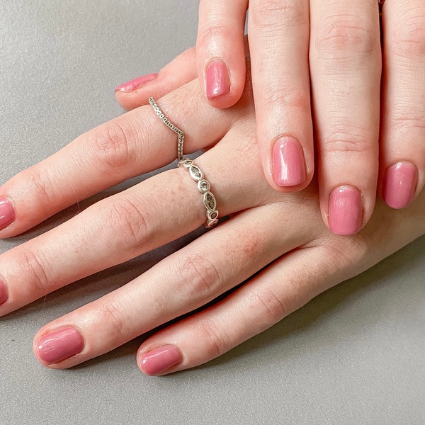 We prepare nails with a dry cuticle tidy and file/buff/shape.