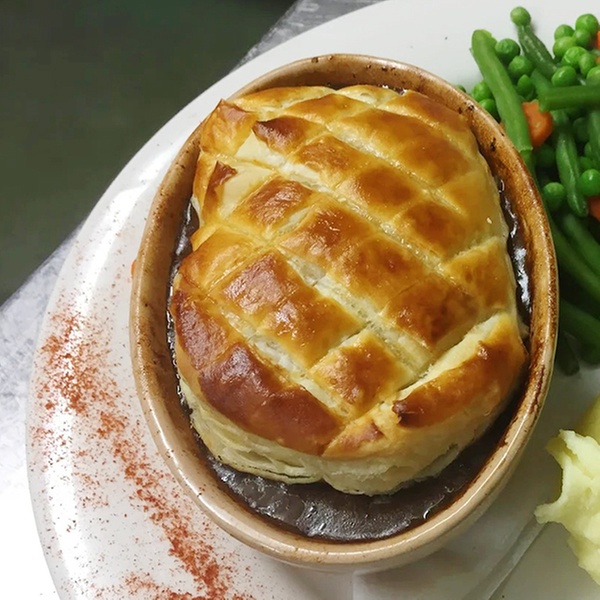 • Lasagna al forno – Italian classic made with 100% British beef, garlic bread, salad & coleslaw (v)