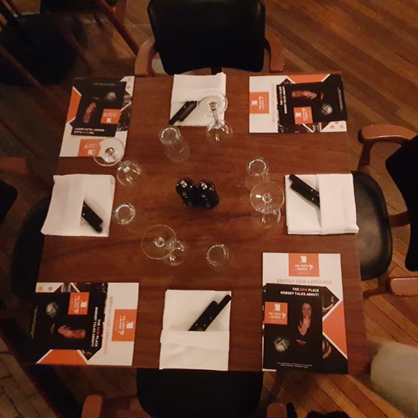 Experience a three-course meal with champagne while communicating with the staff in a mixture of British Sign Language and non-verbal cues