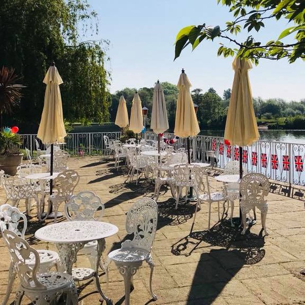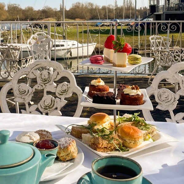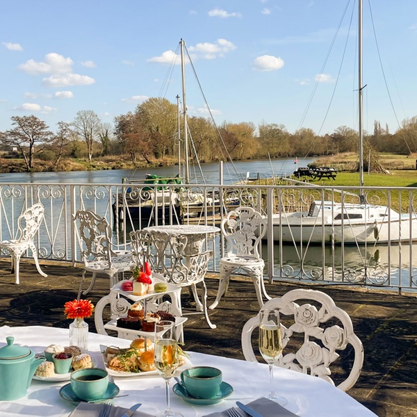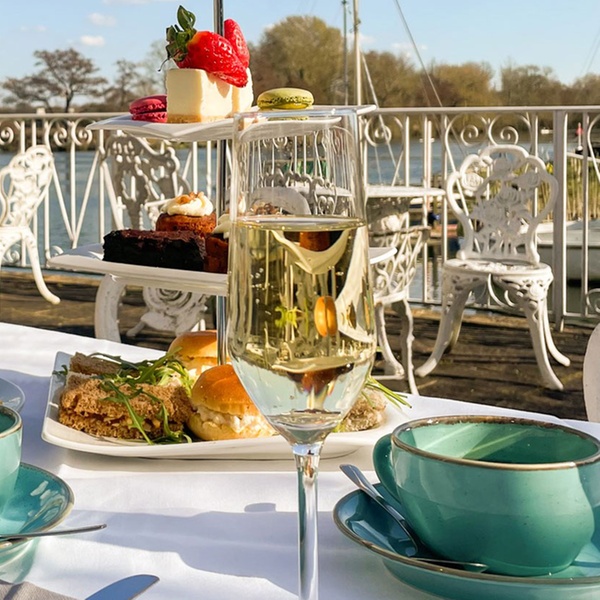 Seating is available on the garden terrace or beside the water, with the option to add a glass or bottle of Prosecco.