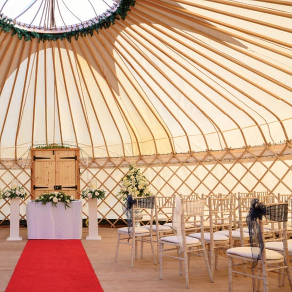 Choosing this offer means celebrating your special day in one of the most beautiful settings imaginable. Whether you prefer the intimate charm of our yurt or the grandeur of our giant tipis, there's something magical here waiting just for you. With woodchip ground cover and ample seating for your guests, the site welcomes you through a charming rustic walkway. Early in the year, cherry blossoms, bluebells, and spring bulbs create a vibrant scene, while wildflowers bloom throughout the summer months. Plus, the team is known for their exceptional service and attention to detail—where everything is taken care of smoothly so you can focus on enjoying every moment.