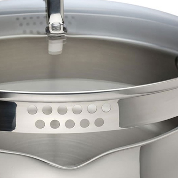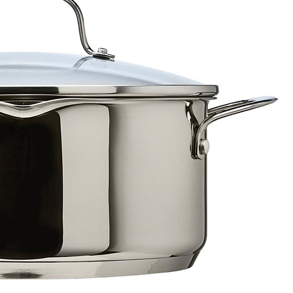 This stainless steel pot with two handles is ideal for boiling and straining vegetables or for cooking stews, soups and casseroles