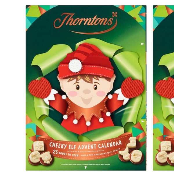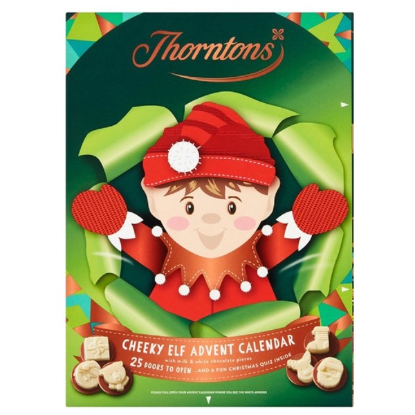 Count down to Christmas with this fun cheeky elf advent calendar, featuring milk and white chocolate pieces behind each door