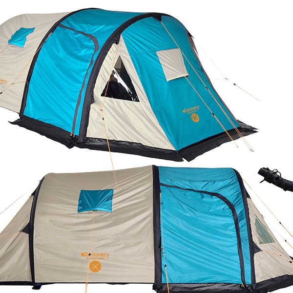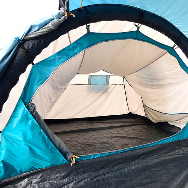 Ideal for camping or a spontaneous stay during a festival, this three-person tent can be assembled in minutes, thanks to inflatable beams