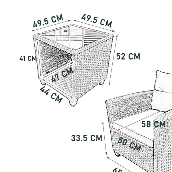 - Coffee table size: (W)49.5cm × (D)49.5cm × (H)52 cm