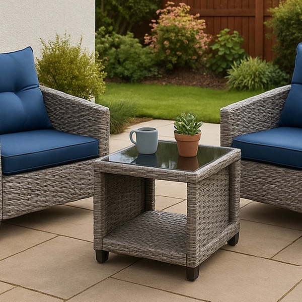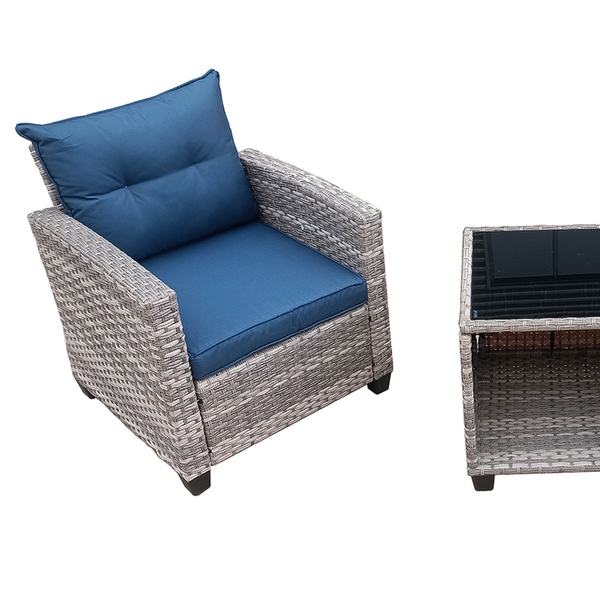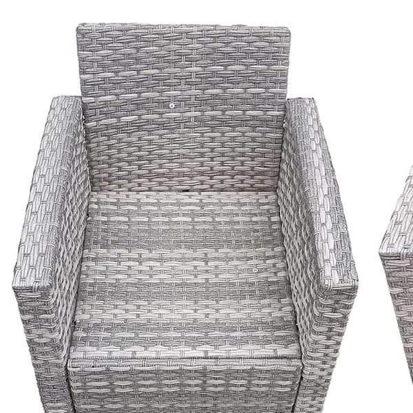 Crafted from durable rattan, this bistro set features thick padded cushions for unmatched comfort in any outdoor setting