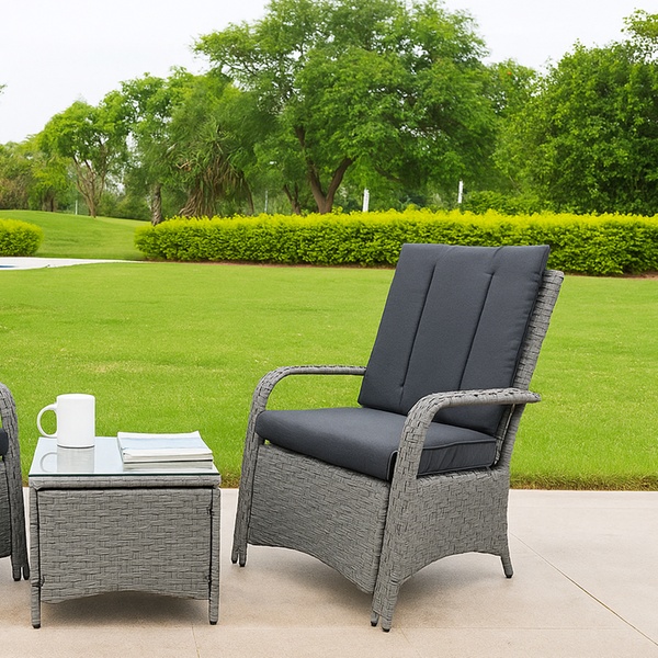 Today's Groupon offers a Three-Piece Outdoor Rattan-Effect Bistro Set, distributed by Furniture One Limited.