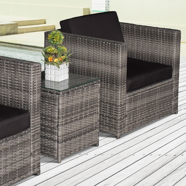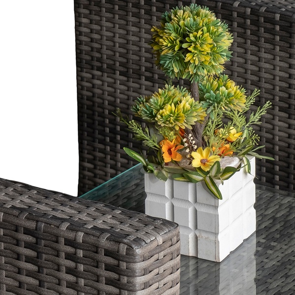 - PE wicker panel in mixed grey on corner backs for style and extra support