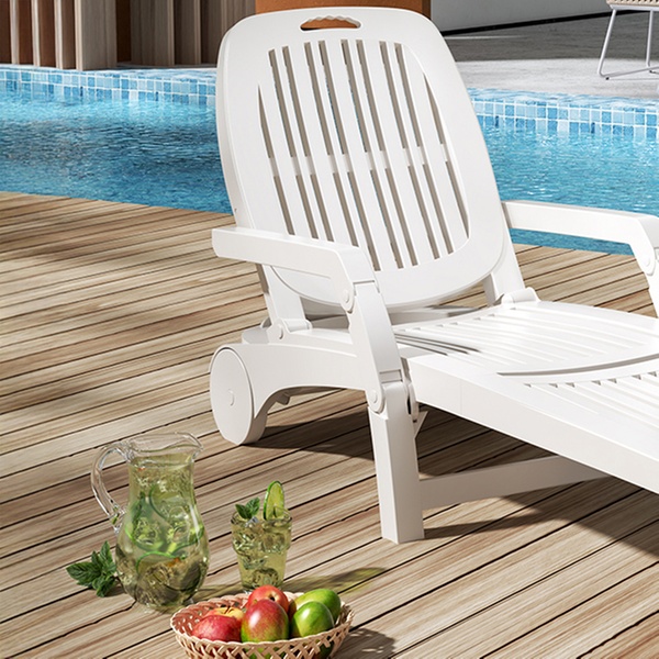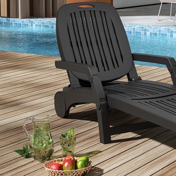 This three-section folding lounger features a versatile adjustable backrest, suitable for creating cosy spots in most outdoor settings