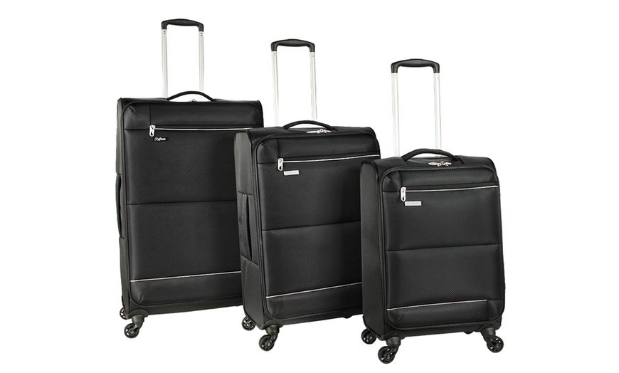 Travel smarter with this Lightweight Luggage Set, including a 20?, 24?, and 28? black suitcase. The ultra light soft shell suitcase is more flexible, meaning you can fit more in your case.