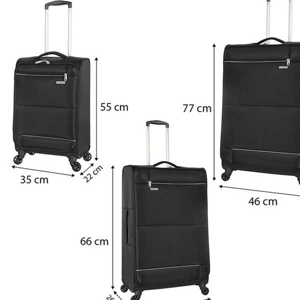 - 28'' suitcase:46cm x 29cm x 77cm; 2.8kg