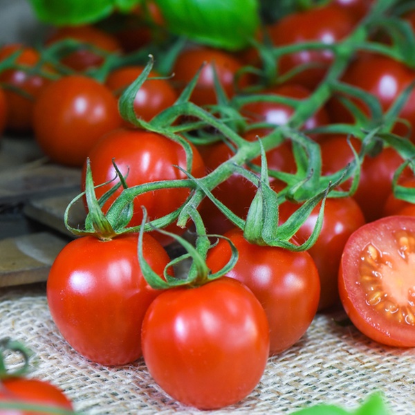 - Each truss produces up to 12 orangey-red, cherry tomatoes weighing around 15g per fruit