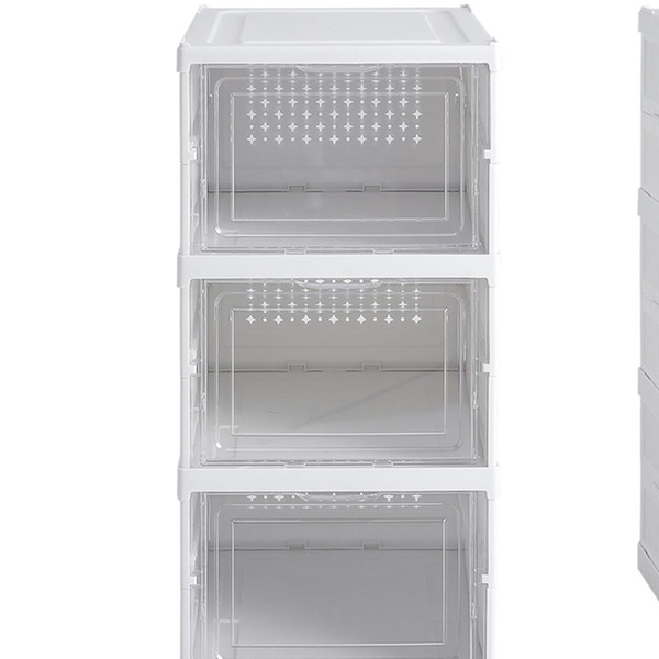 Maximise storage with these stackable transparent shoe boxes, keeping footwear visible and fresh with simplicity