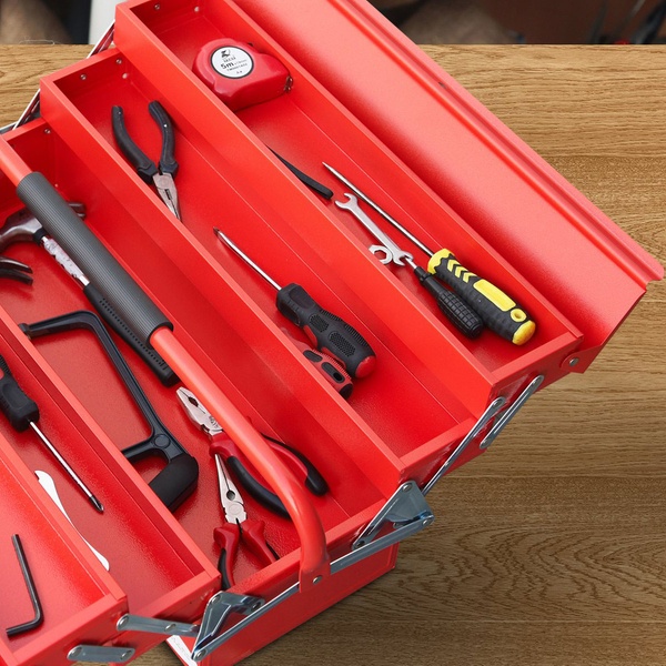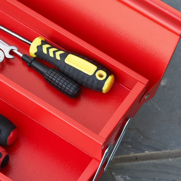 With its durable steel construction and ample storage space, this stylish red tool box is suitable for home or professional DIY enthusiasts