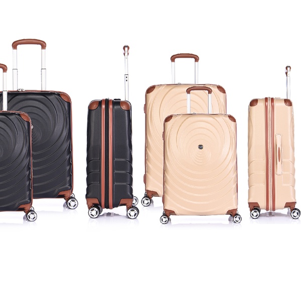 This set of suitcases includes one cabin-sized trolley case, one medium and one small trolley case; ultra-light, silent swivel wheels