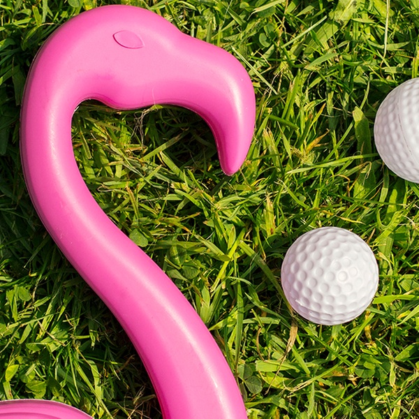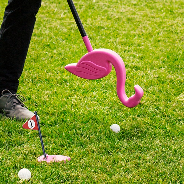 - Comes with a cup, flag and flamingo-styled golf club