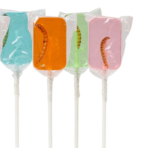 - Fruit-flavoured lolly with a large mealworm at its centre