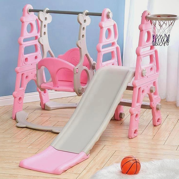 - Package includes one 3-in-1 Toddler Slide and Swing Set