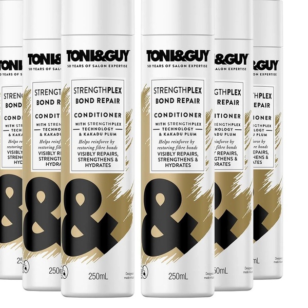 Box contains: of Toni & Guy Bond Repair Conditioner with StrengthPlex Technology, 250ml, 3 or 6 Pack