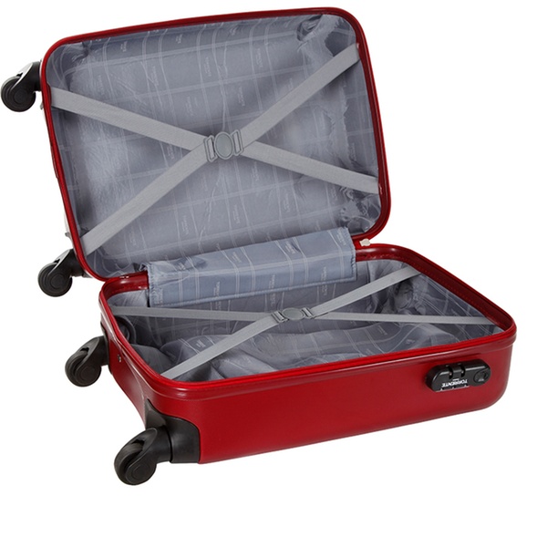 Combining high strength and light weight, this cabin bag features four wheels for great manoeuvrability and adjustable holding straps inside