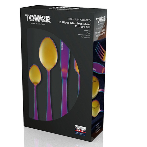 This 16-piece cutlery set, made from titanium-coated stainless steel, is ideal for every occasion and features lasting design